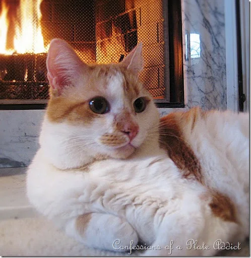 I love your mantel. Those stockings are my favorite! Kitties in front of a warm fire always makes me smile. hugs, Linda