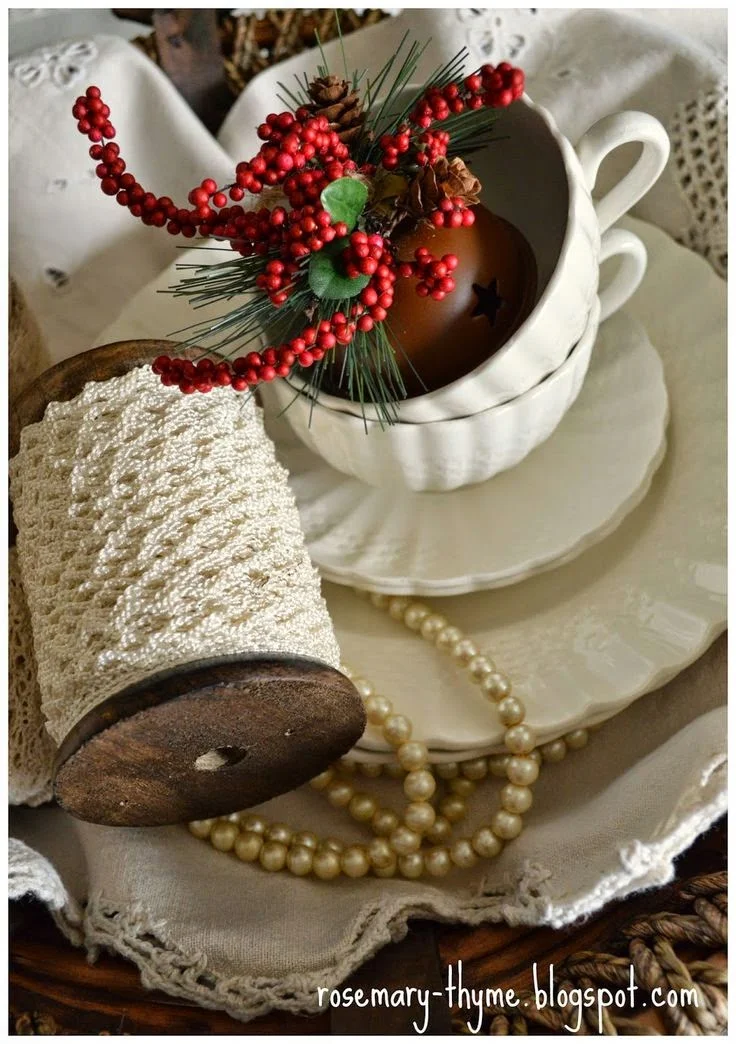 And finally, Mimi from Mimi's Vintage Charm shared this wonderful vignette of Winter Cheer with some festive ideas for holiday gifts.