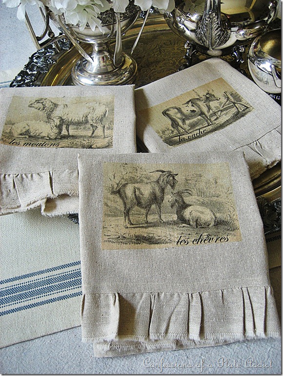 CONFESSIONS OF A PLATE ADDICT French Ticking Tea Towels from a PillowcaseI’m excited because it’s time for the monthly share from our Country French design group…and I have a fun idea that has been cooking in my brain for a while…tea towels made from a pillowcase! I love French ticking and I love generous ruffles so I had planned to create a tea towel combining them both when it hit me…I am describing the pillowcases from my toile guest bedroom!